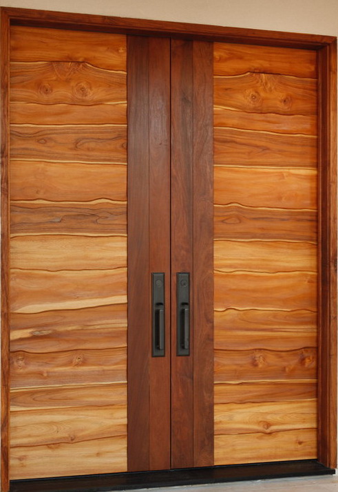 Door with random / natural edge of teak wood planks.  With custom size and option of single, double, multiple door panels.