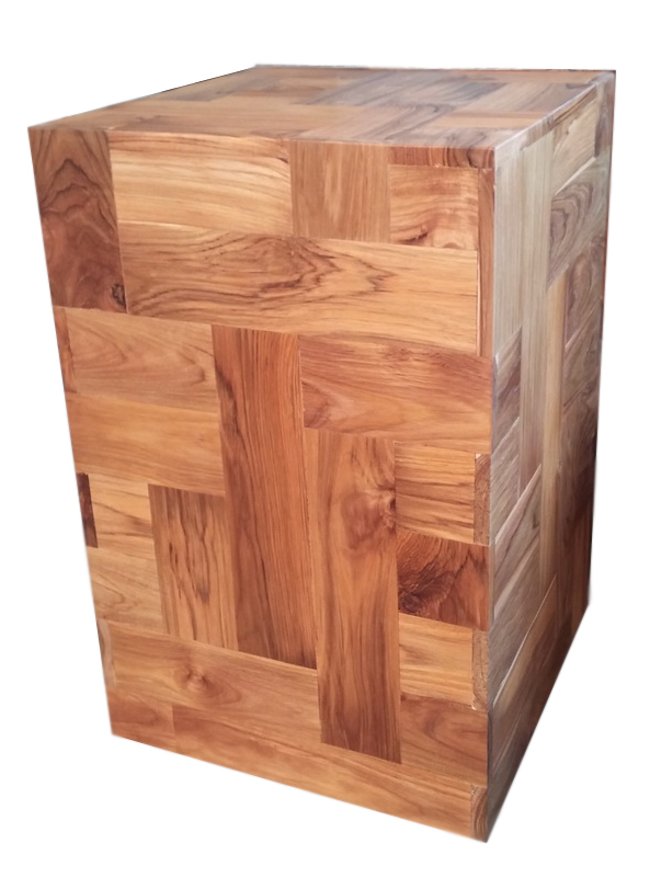 A Pedestal Stand / Column / End Table, made out of mosaic teak wood.  Custom sizes and finishes is available upon request.