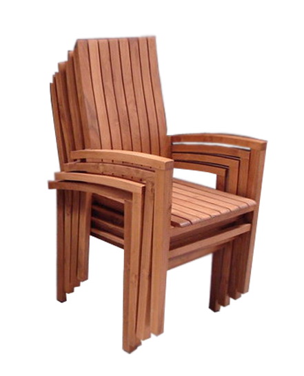 Dining Chair with arms " Miami " , made out of teak wood. Stack-able.